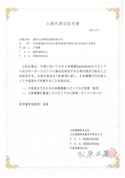 濮陽丸松精密機械有限公司是日本大彌精機株式會社在中國的代理商,公司專業(yè)從事精密、超精密主軸、電主軸的開發(fā)設(shè)計、生產(chǎn)制造。從針對客戶需求設(shè)計專用主軸,到生產(chǎn)零部件,試運行交付客戶,周期可在三個月內(nèi)完成。主要客戶均為日本知名企業(yè)。我公司自2006年成立至今,一直從事主軸零部件的生產(chǎn)及組裝,曾給富士康深圳、昆山、濟源工廠生產(chǎn)超過3000根主軸。常熟光洋、上海東培、杭州人本、濮陽貝英等眾多國內(nèi)廠商也在使用我公司生產(chǎn)的主軸。